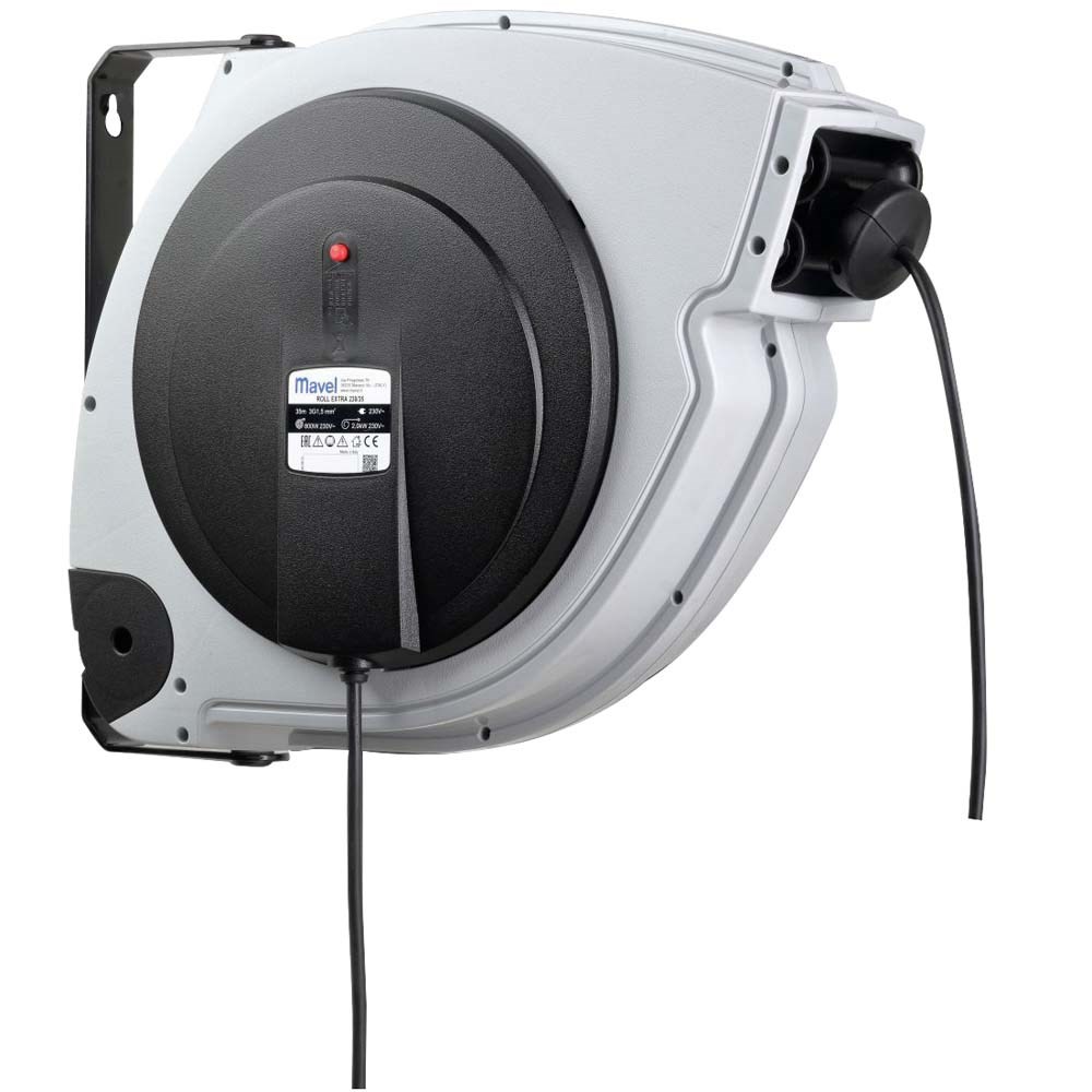Contacteer onsGesloten slanghaspel in kunststof behuizing met 25m elektrisch snoer van 5x2,5 mm². Maximaal aansluitvermogen van 5000 Watt (haspel afgerold)
