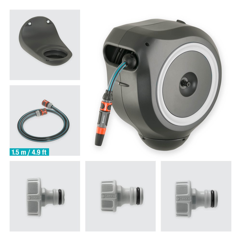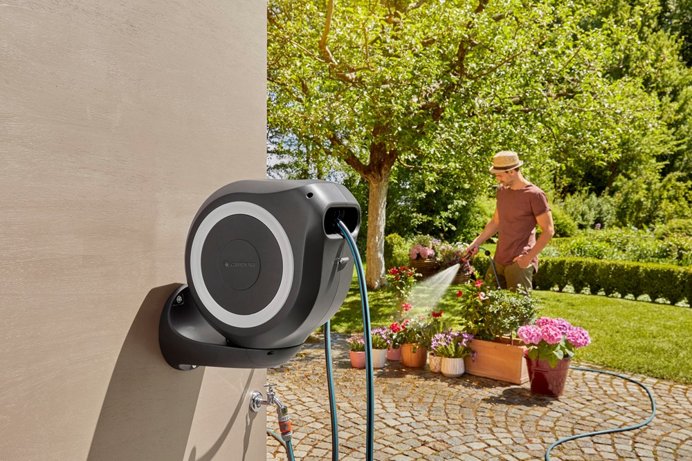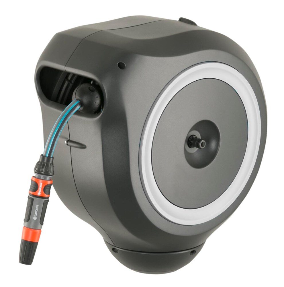 Contacteer onsGeen opwikkelen, geen knopen, geen verdraaiing: Dankzij de GARDENA wandslangenbox RollUp M is tuinbewatering erg eenvoudig en handig. De compacte slangenbox wordt eenvoudig aan een muur bevestigd en is onmiddellijk klaar voor gebruik. De praktische muurbeugel kan meer dan 180 graden worden gedraaid, zodat de slang niet knikt tijdens het bewateren en elke hoek van de tuin moeiteloos kan worden bewaterd. Voor het sproeien kunt u de tuinslang eenvoudig uittrekken tot een maximaal 20 meter. Dankzij een praktisch vergrendelingsmechanisme wordt de slang automatisch op de gewenste lengte vastgezet. De bijzonder korte vergrendelingspunten grijpen vast zodra u stopt. Voor het oprollen wordt het mechanisme ontgrendeld door licht aan de slang te trekken. Dankzij de ingebouwde stalen veer rolt de slang betrouwbaar, automatisch en gelijkmatig op. Het oprolmechanisme is voorzien van innovatieve RollControl-technologie, die zorgt voor veilig en gecontroleerd oprollen van de slang. De box is voorzien van een geïntegreerde slanggeleider, zodat de slang tijdens het oprollen niet wordt beschadigd door knopen of knikken. Onder de muurbeugel bevindt zich een praktische houder voor alle bewateringshulpstukken. De UV- en vorstbescherming voorkomt schade aan materiaal door zonlicht of vorst. De wandslangenbox kan dus het hele jaar door worden gebruikt en heeft een lange levensduur. Bovendien kan de box niet worden gestolen dankzij de diefstalbeveiliging. De wandslangenbox wordt geleverd met een muurbeugel, een flexibele verbindingsslang, alle benodigde Original GARDENA System onderdelen en montageonderdelen en een mondstuk met twee verschillende sproeiopties. GARDENA geeft een garantie van vijf jaar op dit kwaliteitsproduct.