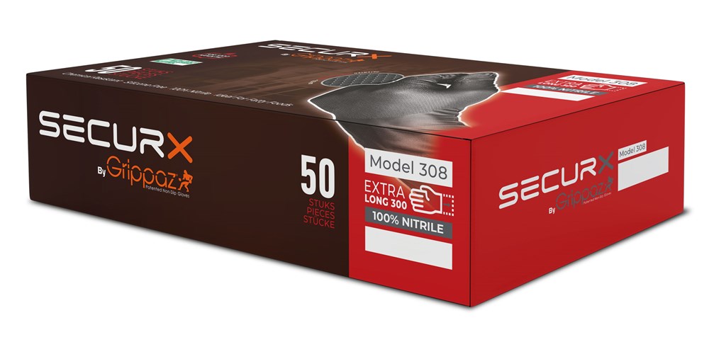 Contacteer onsSecurX Artikelnummer: PPSX 7808N09 GRIPPAZ 308 LONG NITRILE ZWART - MAAT 9 / 0.2 MM / PRIJS PER 50 ST.