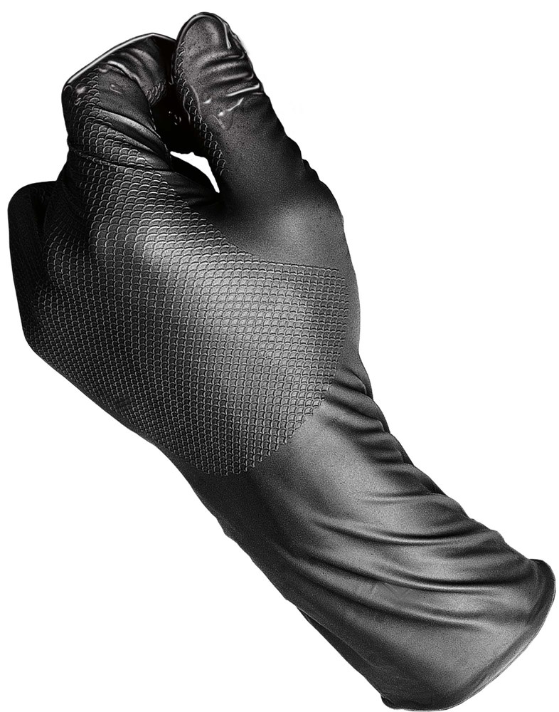 Contacteer onsWegwerphandschoenen ''GRIPPAZ 308 LONG'' in zwart geschubd nitrile