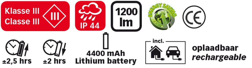 Contacteer onsLUMX Artikelnummer: PPLM 30200 MULTI-BATTERY MT-100 / 2*50W / + statief / IP 20. met 6 adapters
