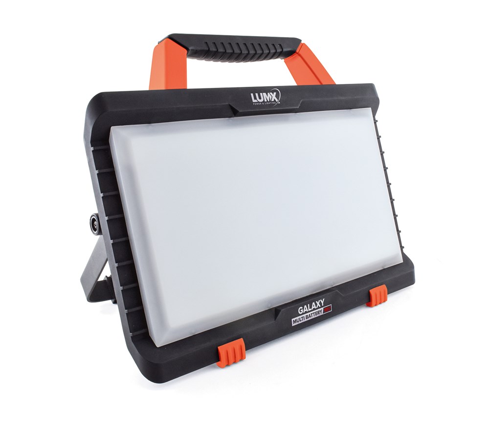 Contacteer onsLUMX Artikelnummer: PPLM 30080 GALAXY MULTI Battery - LED straler / 50W / IP54 + 5 batterij adapters