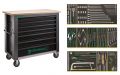 Contacteer onsVerrijdbare werkbank nr. WB625 met 152-delige set in TCS, inhoud: bankhamer 500 gram; centerpunt, 120x12 mm; 7 pendrijvers, 115x2, 150x3 t/m 6, 175x4 en 200x8 mm; koudbeitel 200 mm; 4 seegerringtangen, J2, J21, A2 en A21; 12 steekringratelsleutels, omschakelbaar, 8 t/m 19 mm; combitang 180 mm; zijsnijtang 160 mm; punttang 200 mm; waterpomptang 240 mm; 4 sleufschroevendraaiers, 3,5x75, 4x100, 5,5x125 en 6,5x150; 3 kruiskopschroevendraaiers, PH1, PH2 en PH3; 4 vijlen: blok, rond, halfrond en driekant; pakkingschraper; zaagbeugel; kraspen; maatlat; kabelmes; rolbandmaat; uitschuifbaar mes; 8 Torx schroevendraaiers, T8 t/m T30; 9 kogelkop inbussleutels, 1,5-10 mm; 9 Torx inbussleutels, T8-T40; bitbox 1/4'' 21-delig; bithouder 1/4''; 21 lange steekringsleutels, 6 t/m 19, 21, 22, 24, 27, 30, 32 en 36 mm; 14 doppen 1/2'', 6-kant, 10 t/m 19, 22, 24, 27 en 30 mm; 2 verlengstukken 1/2'', 5’’ en 10’’; kardangewricht 1/2''; ratel 1/2''; 9 inbusdoppen 1/2'', 4 t/m 17 mm; 9 Torx doppen 1/2'', T20 t/m T60