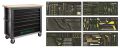 Contacteer onsVerrijdbare werkbank nr. WB625 met 306-delige set in TCS voor trucks, inhoud: 21 steekringsleutels, 6 t/m 36 mm; 21 lange steekringsleutels, 6 t/m 36 mm; 9 steekringratelsleutels, 8 t/m 19 mm; 6 scharniersleutels, 8x9 t/m 18x19 mm; 3 verstelbare moersleutels, 6’’, 8’’ en 10’’; 12 doppen 1/4’’, zeskant, 4 t/m 14 mm; 9 lange doppen 1/4’’, zeskant, 6 t/m 14 mm; 21 schroevendraaierdoppen 1/4’’, 4x sleuf, 3x kruiskop, 5x inbus, 9x Torx; 4 verlengstukken 1/4'', 2’’, 4’’, 6’’ en 10’’; kardangewricht 1/4’’; steekhecht 1/4’’; hendel met kniegewricht 1/4’’; bitratel 1/4’’; ratel met kniegewricht QR 1/4’’; ratel QR 1/4’’; verloopstuk fixgrip 1/4’’-3/8’’; bitset 1/4’’, 21-delig; bithouder 1/4’’-1/4’’; verbindingshulpstuk 1/4’’-1/4’’; 11 doppen 3/8’’, zeskant, 8 t/m 19 mm; 4 inbusdoppen 3/8’’, 5 t/m 8 mm; 6 Torx-doppen 3/8’’, T10 t/m T40; 2 verlengstukken 3/8’’, 3’’ en 10’’; kardangewricht 3/8’’; ratel QR 3/8’’; verloopstuk 3/8’’-1/4’’; verloopstuk 3/8’’-1/2’’; 15 doppen 1/2’’, zeskant, 13 t/m 32 mm; 5 Torx-doppen, T40 t/m T60; 3 verlengstukken 1/2’’, 2’’, 5’’ en 10’’; verlengstuk wobble 1/2’’, 2’’; hendel met kniegewricht 1/2’’, 15’’; kardangewricht 1/2’’; ratel QR 1/2’’; verloopstuk 1/2’’-3/8’’; 13 IMPACT doppen 1/2’’, zeskant, 13 t/m 36 mm; 8 IMPACT lange doppen 1/2’’, 13 t/m 24 mm; 4 IMPACT inbusdoppen 1/2’’, 10 t/m 17 mm; IMPACT kardangewricht 1/2’’; 4 IMPACT Torx-doppen 1/2’’, T45 t/m T60; kombitang 180 mm; telefoontang 160 mm; 4 seegerringtangen, J2, J21, A2 en A21; 2 waterpomptangen, 10’’ en 12‘’; griptang 7’’; zijsnijtang 160 mm; ratel-kabelschoentang geïsoleerd; ratel-kabelschoentang ongeïsoleerd; krimptang; 5 sleufschroevendraaiers, 4x100, 5,5x125, 8x175, 10x200 en 12x250 mm; 3 kruiskopschroevendraaiers, PH1, PH2 en PH3; 2 PZ schroevendraaiers, PZ1 en PZ2; 9 Torx-schroevendraaiers, T8 t/m T40; 3 flexibele dopschroevendraaiers, 6, 7 en 8 mm; 9 lange inbussleutels met kogelkop, 1,5 t/m 10 mm; 8 Torx-inbussleutels met kogelkop, T9 t/m T40; 2 bankhamers, 500 en 1000 gram; nylonhamer 40 mm; koudbeitel 175 mm; centerpunt 120x10 mm; 6 pendrijvers, 2 t/m 8 mm; breekijzer; blokvijl; ronde vijl; zaagbeugel 300 mm; kleine zaagbeugel; set voelermaten; staaldraadborstel; kraspen; hardmetalen kraspen; magneetzoeker 500 gram; pakkingschraper; schuifmaat; autolichttester; telescoopspiegel 30 mm; rolbandmaat 5 m; uitschuifbaar mes; bekledingsvork; oorklemtang; stripverwijderaar; draadschaar; messing uitdrijfpen.