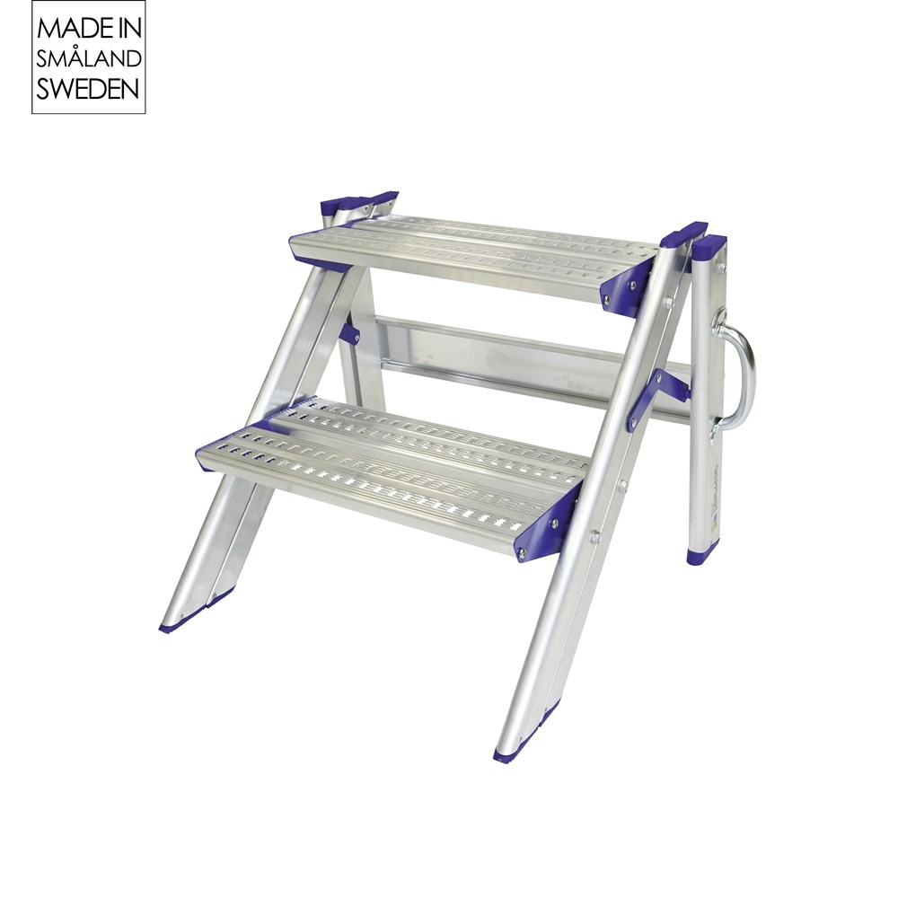 Contacteer onsInklapbaar werkbordes met grote, opengewerkte, anti-slip treden van 45 x 25 cm voor meer stacomfort. Ideaal voor montage en werken aan machines, voor stukadoors ivm de opengewerkte treden en voor verhuis en transportbedrijf als toegangstrap voor de trailer. Zeer compact in te klappen en makkelijk mee te nemen met behulp van draaghendel.