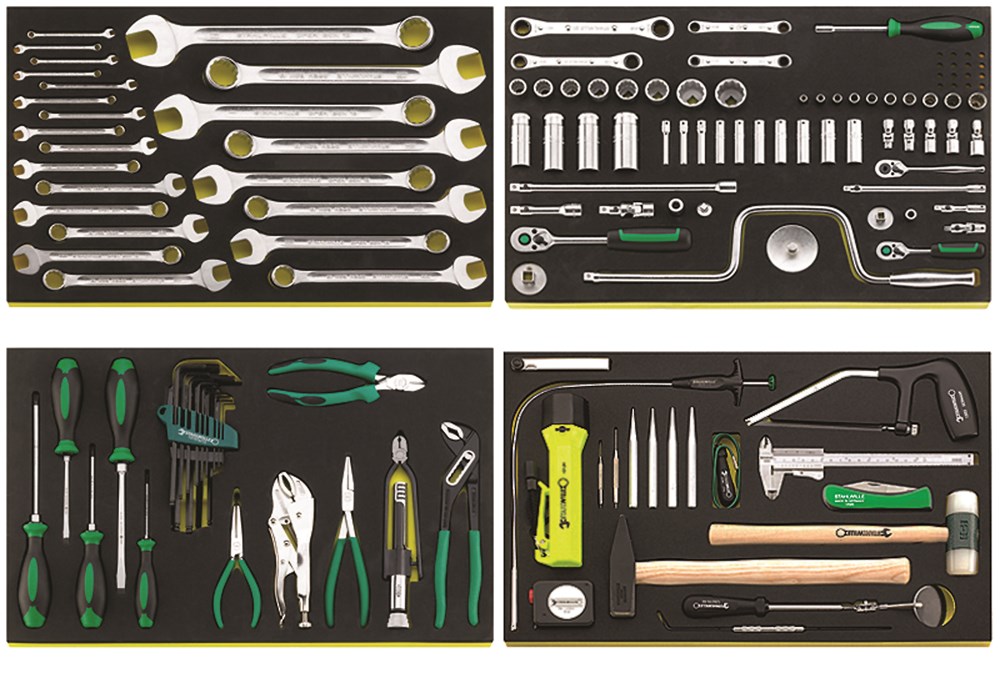 Contacteer onsVoor het onderhoud aan vliegtuigen en helicopters, 122 gereedschappen, in TCS-inleg, 4x3/3 inleg voor 4 schuifladen, geschikt voor werkbank nr. 92KM G, gereedschapswagens nr. 97N, 97N/KM, 97H/8, 97H/KM; gereedschapskisten nr. 94N, 94N/KM, cassettes-box nr. 920 en Rollbox nr. 922N.