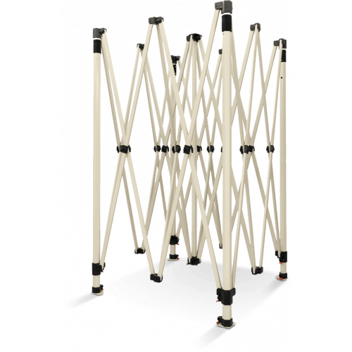 De GO-WORK heeft een robuuste, zeshoekige staander van gemoffeld staal met een afmeting van 40x40mm (1,2mm wanddikte). De verbindingen zijn van robuust hamerslag nylon. Elk type wordt met hetzelfde hoogwaardige tentdoek geleverd. Inclusief een gratis sterke PVC opbergtas en scheerlijnen met haringen.