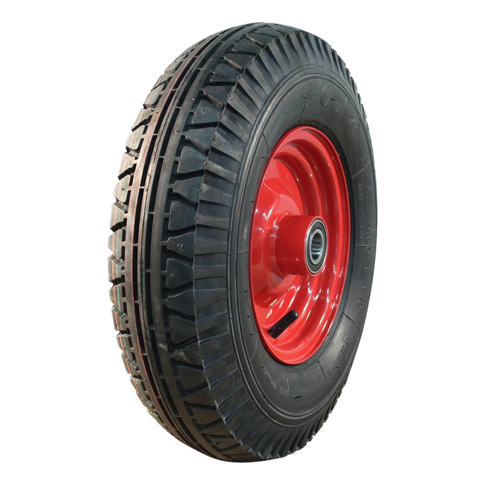 Novio Artikelnummer: 151.406.250.810 LUCHTBAND + WIEL 4.00-8 V-40 8PR + 2.50AX8H2 ET0 NL100 STAAL ROOD