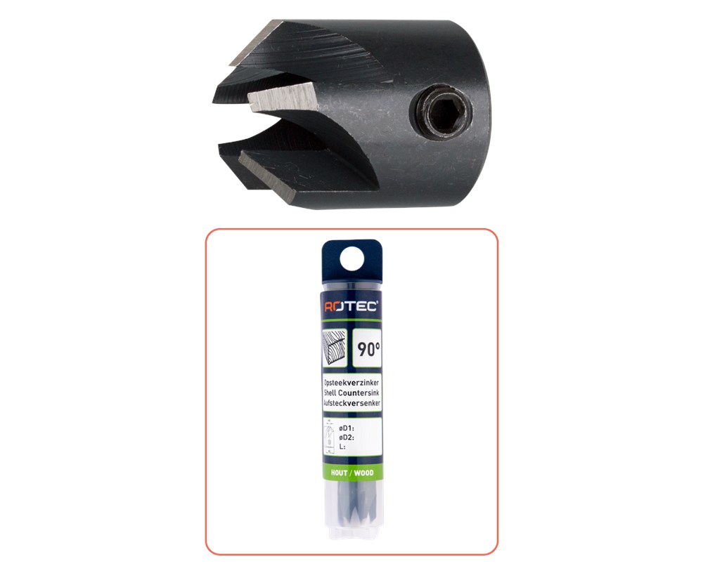 Boren en verzinken in een handeling. Omgekeerd is de verzinker ook als dieptestop te gebruiken.