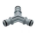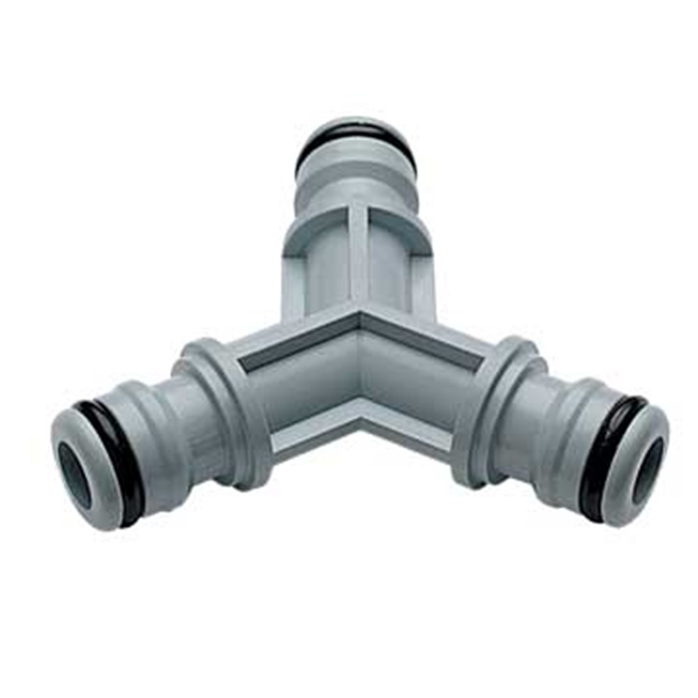 Contacteer onsY-vertakking met 3 nippels, vervaardigd uit duurzaam ABS. De ideale oplossing voor het verbinden van waterslangen.