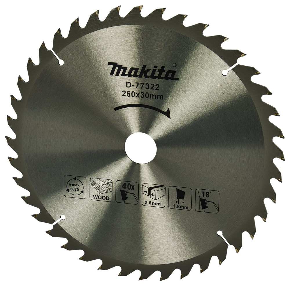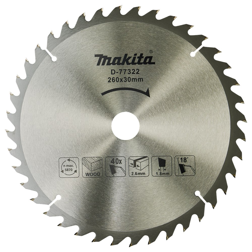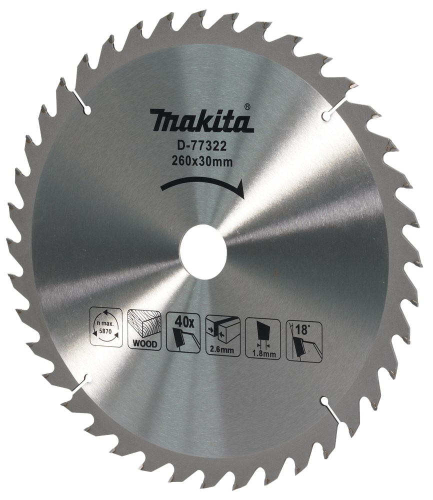 Contacteer onsMakita Artikelnummer: D-77322 AFKORTZAAGBLAD 260 X 30 MM 40T