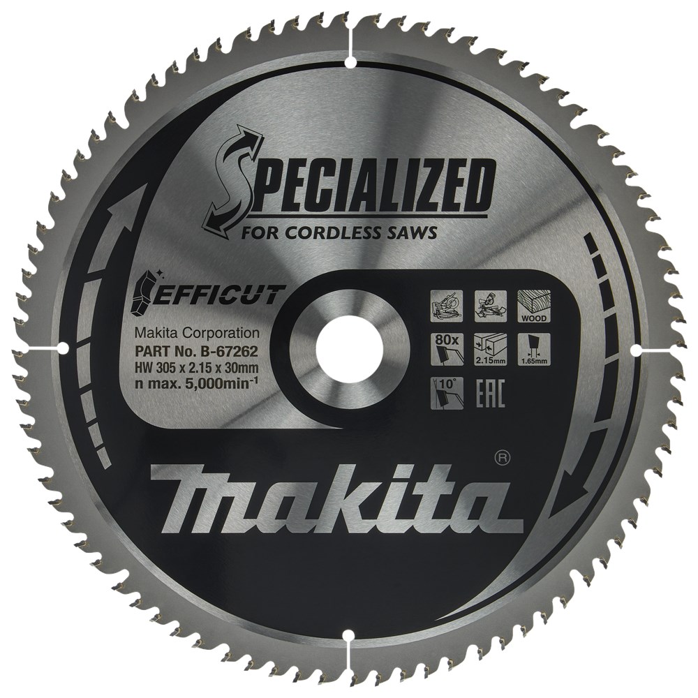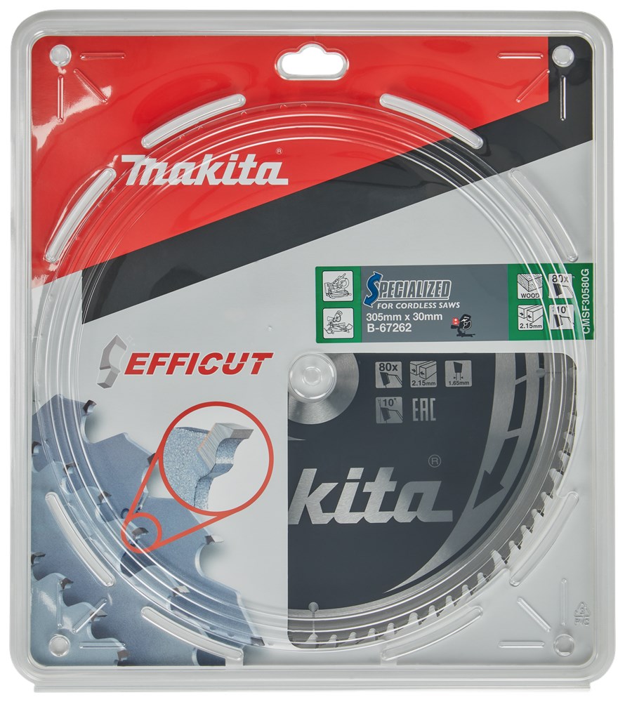 Contacteer onsMakita Artikelnummer: B-67315 CIRKELZAAGBLAD. EFFICUT TCT. 305 X 30 MM. 80 T