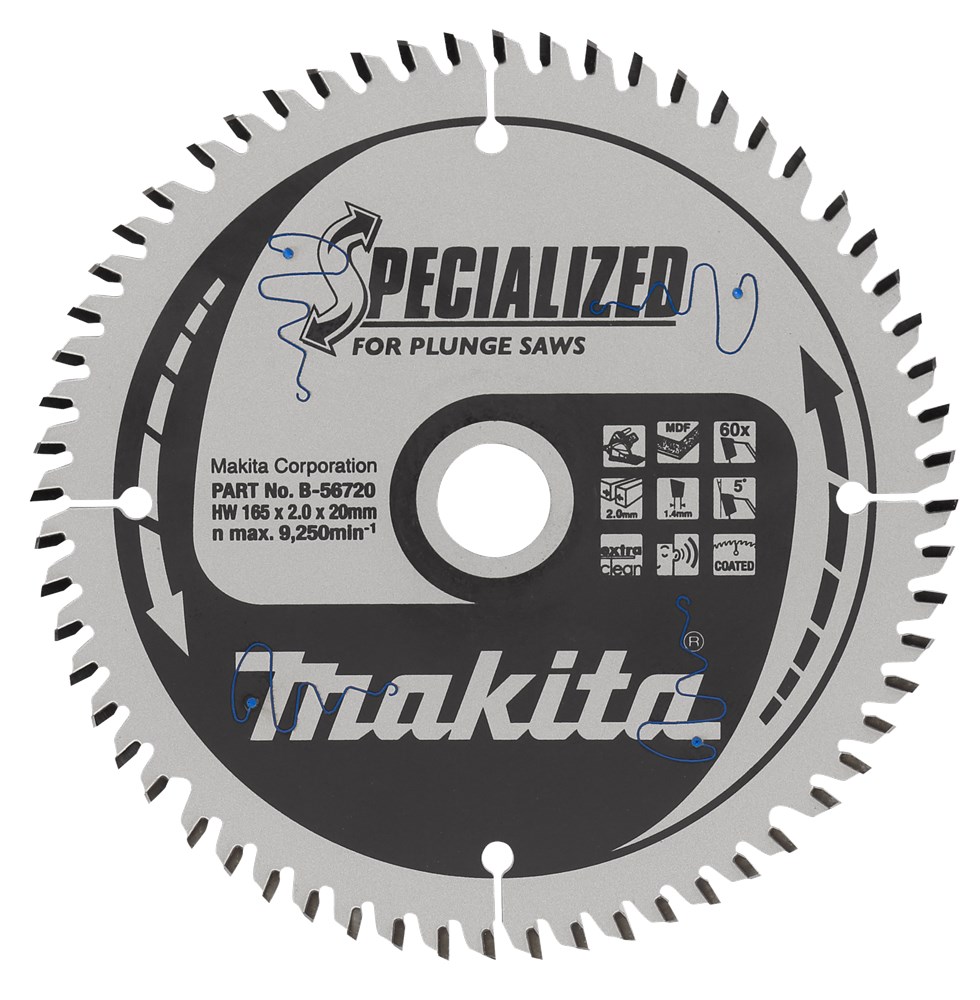 Contacteer onsMakita Artikelnummer: B-56720 CIRKELZAAGBLAD. SPECIALIZED TCT. 165 X 20 MM. 60 T