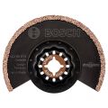 - Met de puntige uiteinden van het segmentzaagblad kan precies tot in krappe hoeken worden gezaagd, terwijl het ontwerp van het ronde zaagblad rechte zaagsneden mogelijk maakt. Met het Starlock Snap-In inzetsysteem kunnen zaagbladen binnen 3 seconden verwijderd en verwisseld worden zonder het zaagblad te hoeven aanraken. Het inzetsysteem biedt de hoogste krachtoverdracht dankzij een 3-dimensionale nauwe aansluiting tussen de machine en het accessoire.