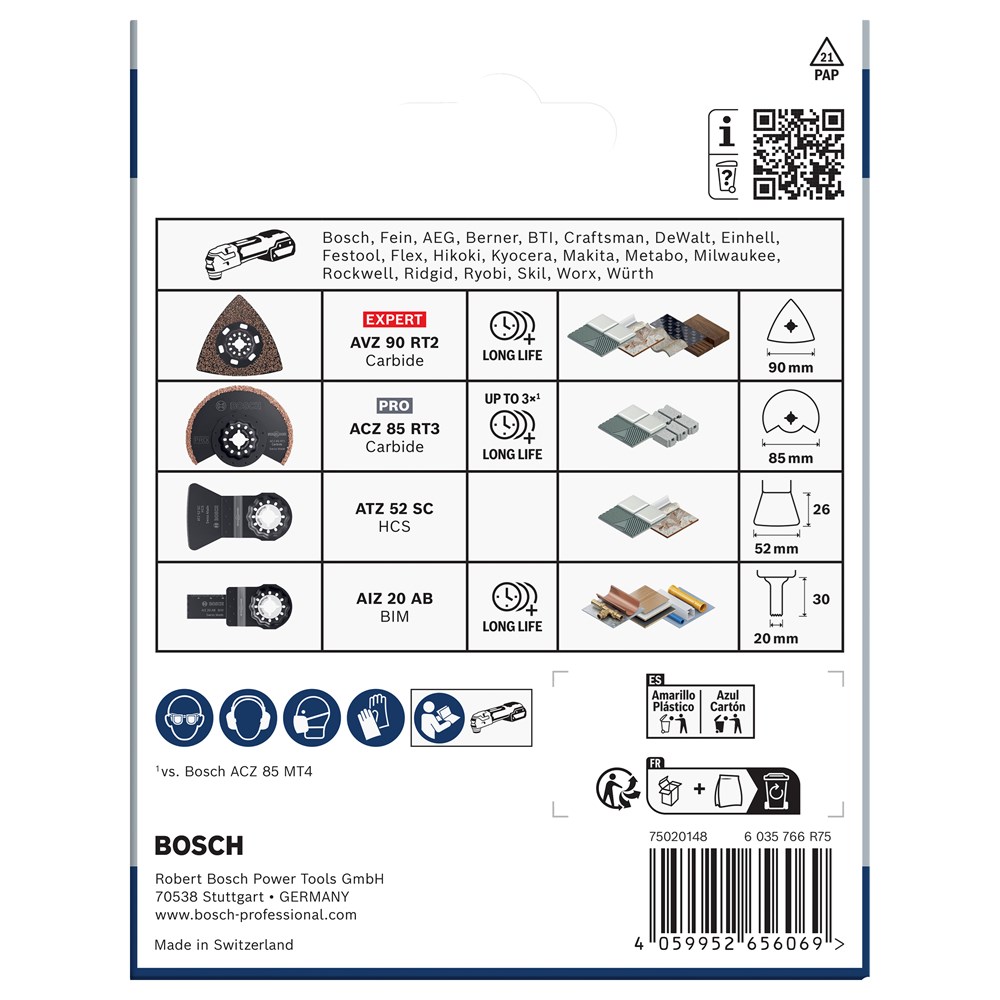 Met de oscillerende multitoolmessen in de Tiling Set kunnen professionele tegelzetters en renovatiebedrijven door de mortel tussen de tegels snijden en tegellijm erachter wegschrapen.