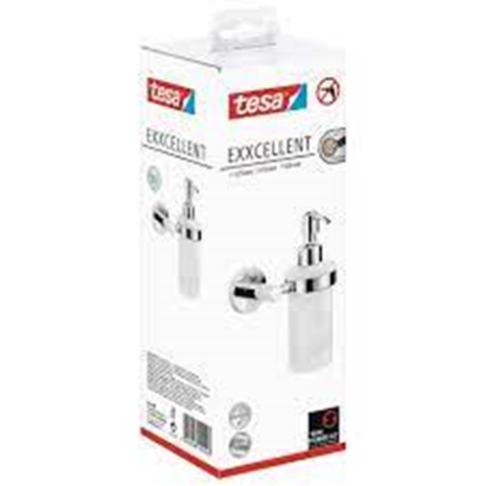 Contacteer onsDe tijdloze en chique tesa® Exxcellent zeeppomp is geschikt voor vloeibare zeep. Hij heeft een matglazen houder en een glanzend verchroomde drager en pompkop. Het ronde ontwerp maakt het een mooi accessoire. De zeeppomp is gemakkelijk opnieuw te vullen en kan 230 ml zeep bevatten. De pomp is gemaakt van duurzame, hoogwaardige materialen en wordt bevestigd met een zelfklevende oplossing in plaats van te boren. Muren of tegels worden niet beschadigd. Hij kan eenvoudig en netjes worden losgemaakt. Hij kan ook ergens anders worden geplaatst met adapter BK20. tesa.Power.Kit Glue: Let op! Bij gebruik kunnen gevaarlijke inhaleerbare stofdeeltjes worden gevormd. Stof niet inademen.