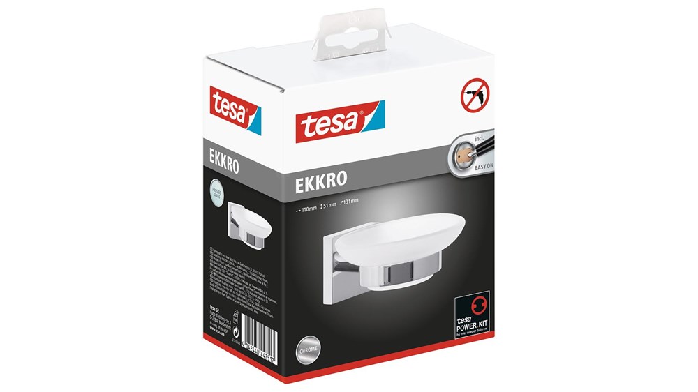 Contacteer onsDe tesa® Ekko zeephouder is een mooie combinatie van een bakje van gesatineerd glas en een glanzend verchroomde beugel. Omdat hij zelfklevend is, kan de zeephouder worden opgehangen waar hij nodig is, zonder te boren en dus zonder schade aan tegels of muren. Nadat de lijm gedurende 12 uur is gedroogd, kan het schaaltje aan de adapter worden bevestigd. Hij kan met weinig moeite worden verwijderd en ergens anders opnieuw worden geplaatst met adapter BK20. De zeephouder is afneembaar, waardoor deze gemakkelijk te reinigen is. tesa.Power.Kit Glue: Let op! Bij gebruik kunnen gevaarlijke inhaleerbare stofdeeltjes worden gevormd. Stof niet inademen.