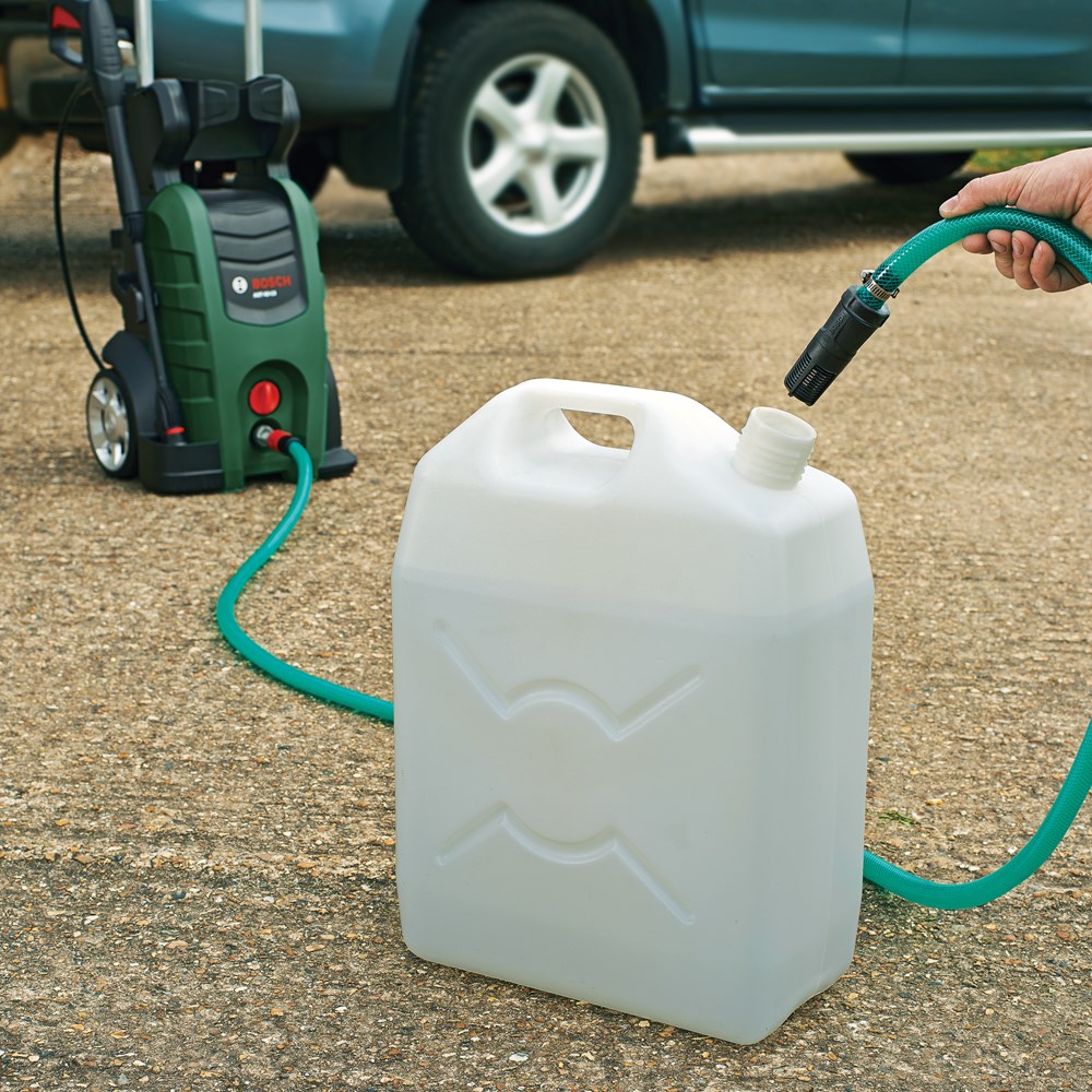 Zorgt voor flexibel gebruik van alternatieve waterbronnen thuis of onderweg Met de zelfaanzuigende set is er geen kraan nodig. Water kan gemakkelijk uit andere bronnen worden gepakt, zoals regentonnen, waardoor meer flexibiliteit en mobiliteit mogelijk is bij het reinigen rondom huis of op andere plekken. Met behulp van een 3 meter lange toevoerslang kan water naar elke hogedrukreiniger uit het Bosch Aquatak-programma worden geleid. Een filter op de slang voorkomt dat deeltjes in de reiniger komen, zodat ook water uit open bronnen kan worden gebruikt.